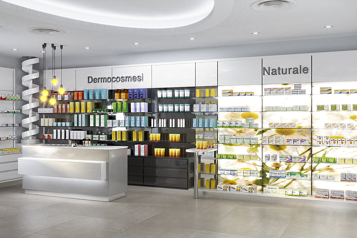 Progetto: Rinnovo Anno: 2019 Area Vendita: 112 mq Dove: Livorno (LI) Rinnovo Arredamento Farmacia Testa Realizzazione precedente Arredamento Farmacia San Marco Modena Realizzazione Successiva