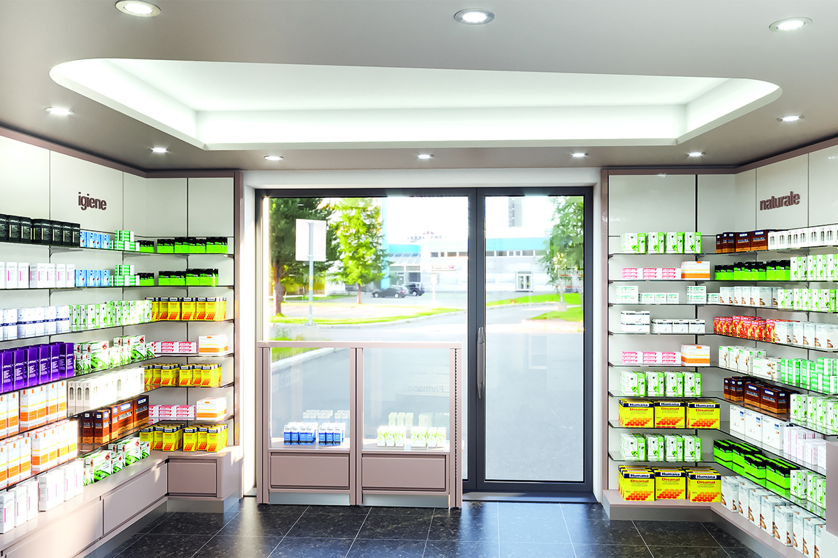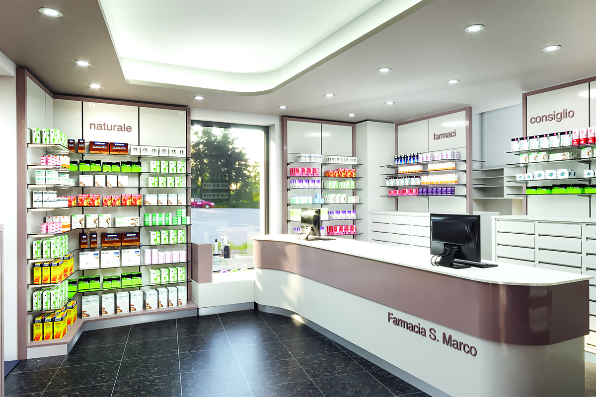 Progetto: Nuova Apertura Anno: 2018 Area Vendita: 45 mq Dove: Modena (MO) Arredamento Farmacia Le Sorgenti Dott. Taglierani Realizzazione precedente Rinnovo Arredo Farmacia di Pozzuolo Realizzazione Successiva