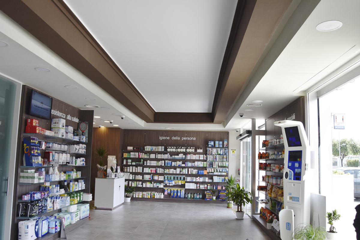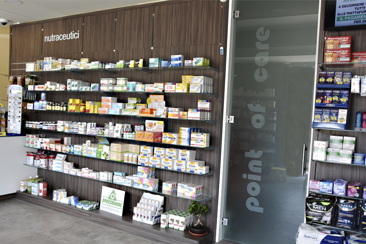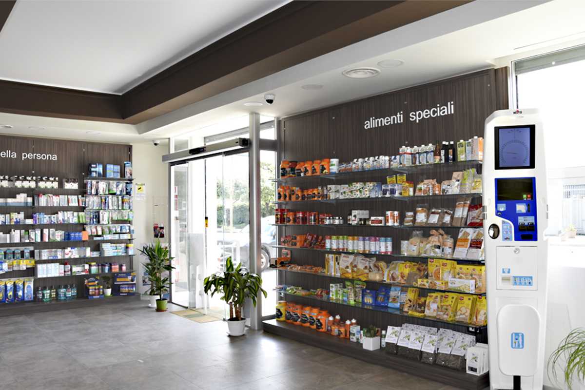 La suddivisione dell’offerta merceologica è organizzata in macro-aree intuitive e pratiche per i clienti: una comunicazione capace di essere efficace, ma in maniera semplice, senza affastellare elementi visivamente eccessivi. Sobrietà che rispecchia il valore sociale della farmacia, rispettandone l’identità senza confonderla con quella di un market.