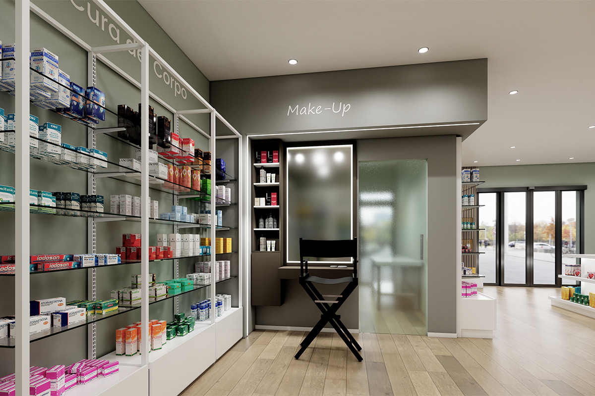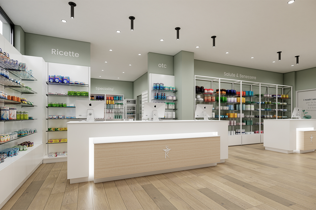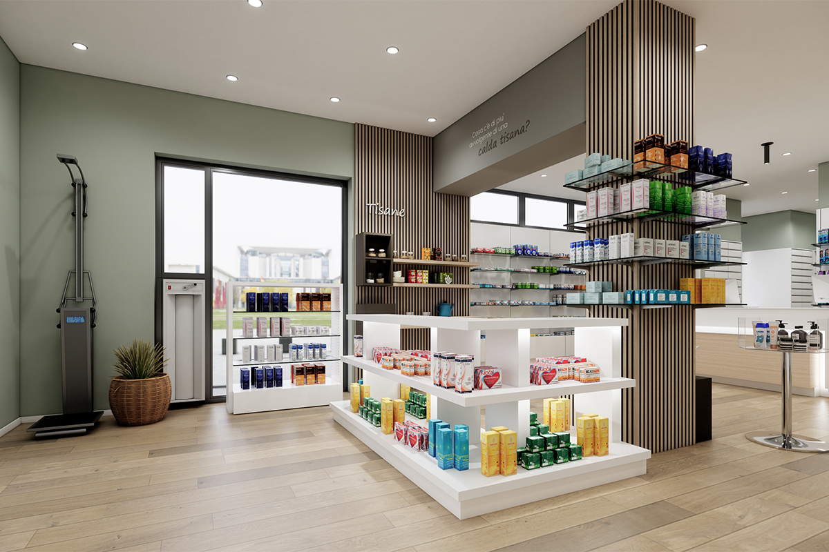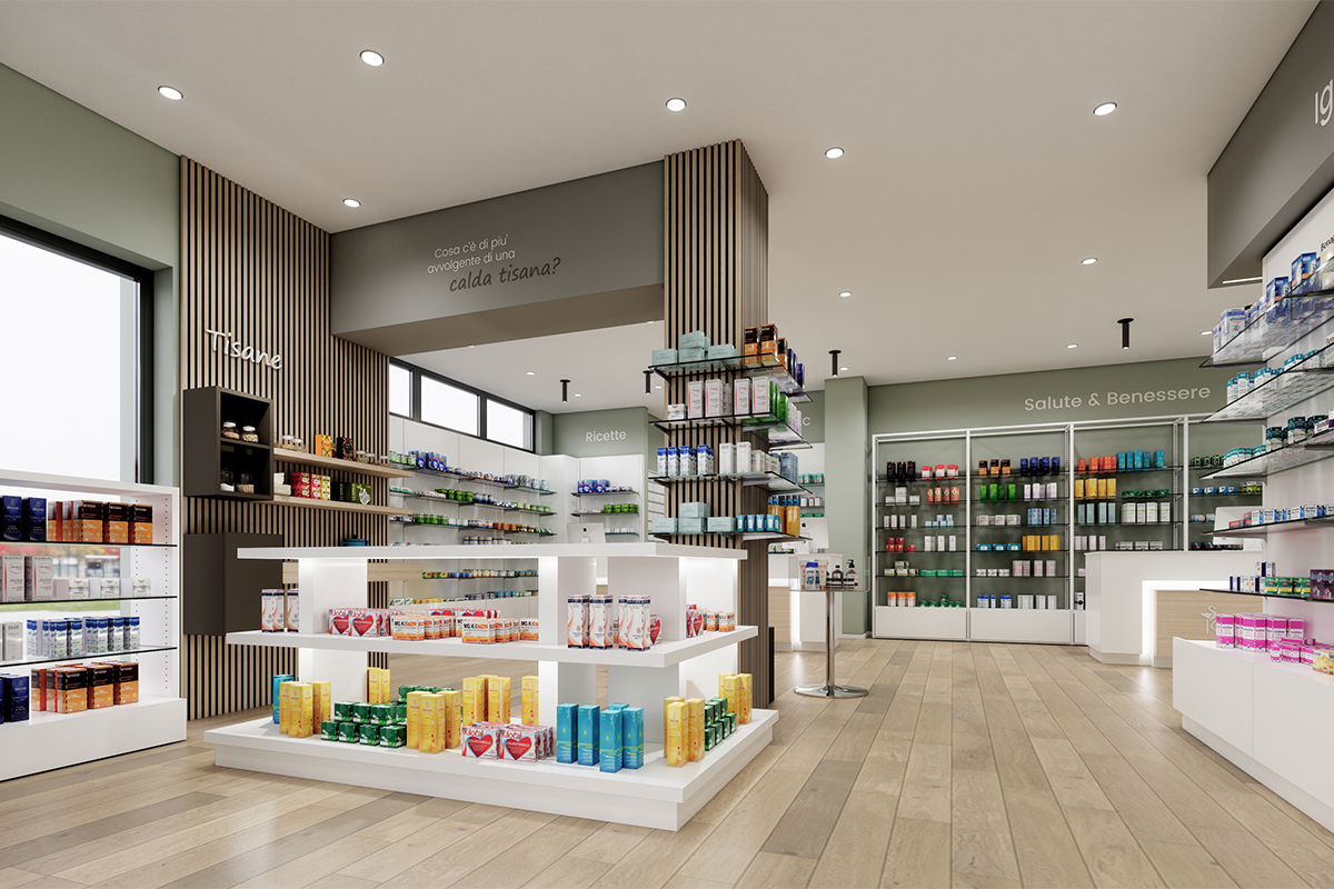 Progetto: Ristrutturazione Anno: 2023 Dove: Somma Vesuviana Napoli Nuovo Locale Farmacia Pace Sciacca AG Realizzazione precedente Nuovo Arredo Farmacia Moderna Prato Realizzazione Successiva