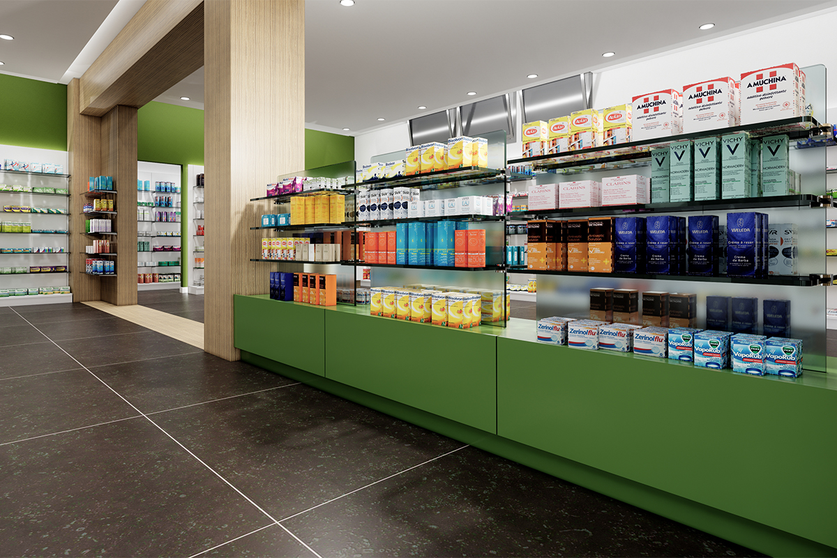Progetto: Ristrutturazione Anno: 2022 Area Vendita: Dove: Bologna (BO) Nuovo locale Farmacia Lopez NA Realizzazione precedente