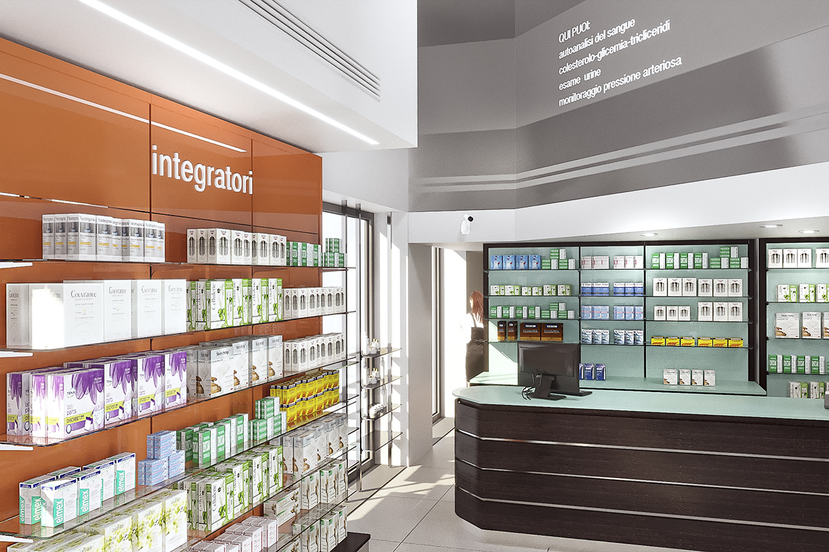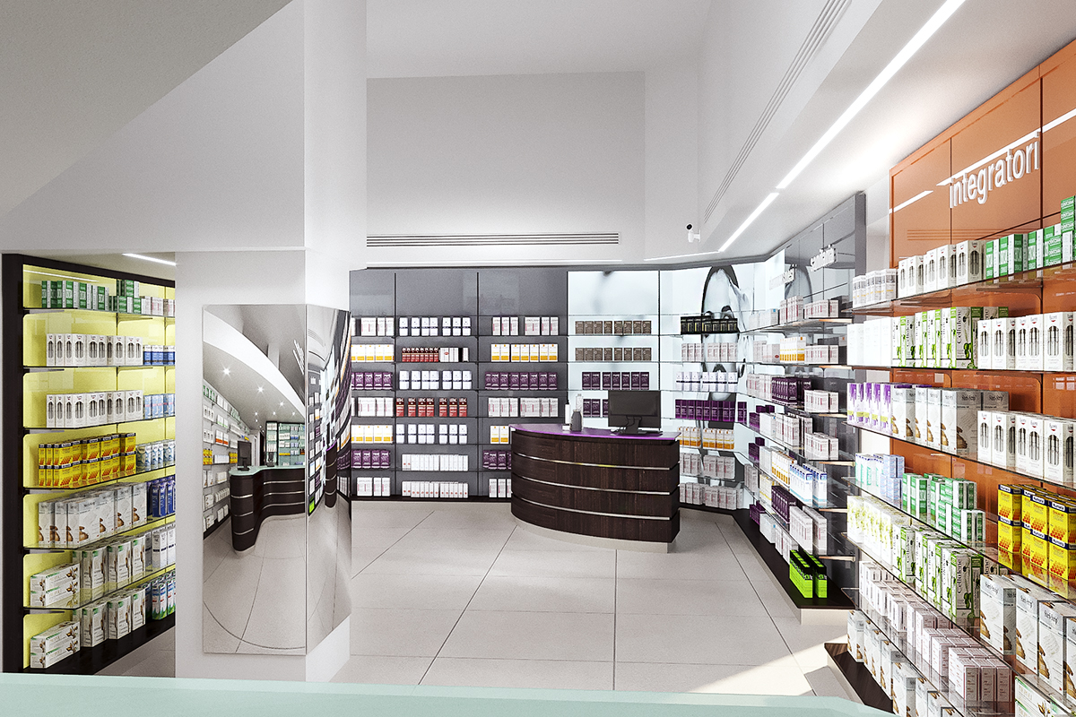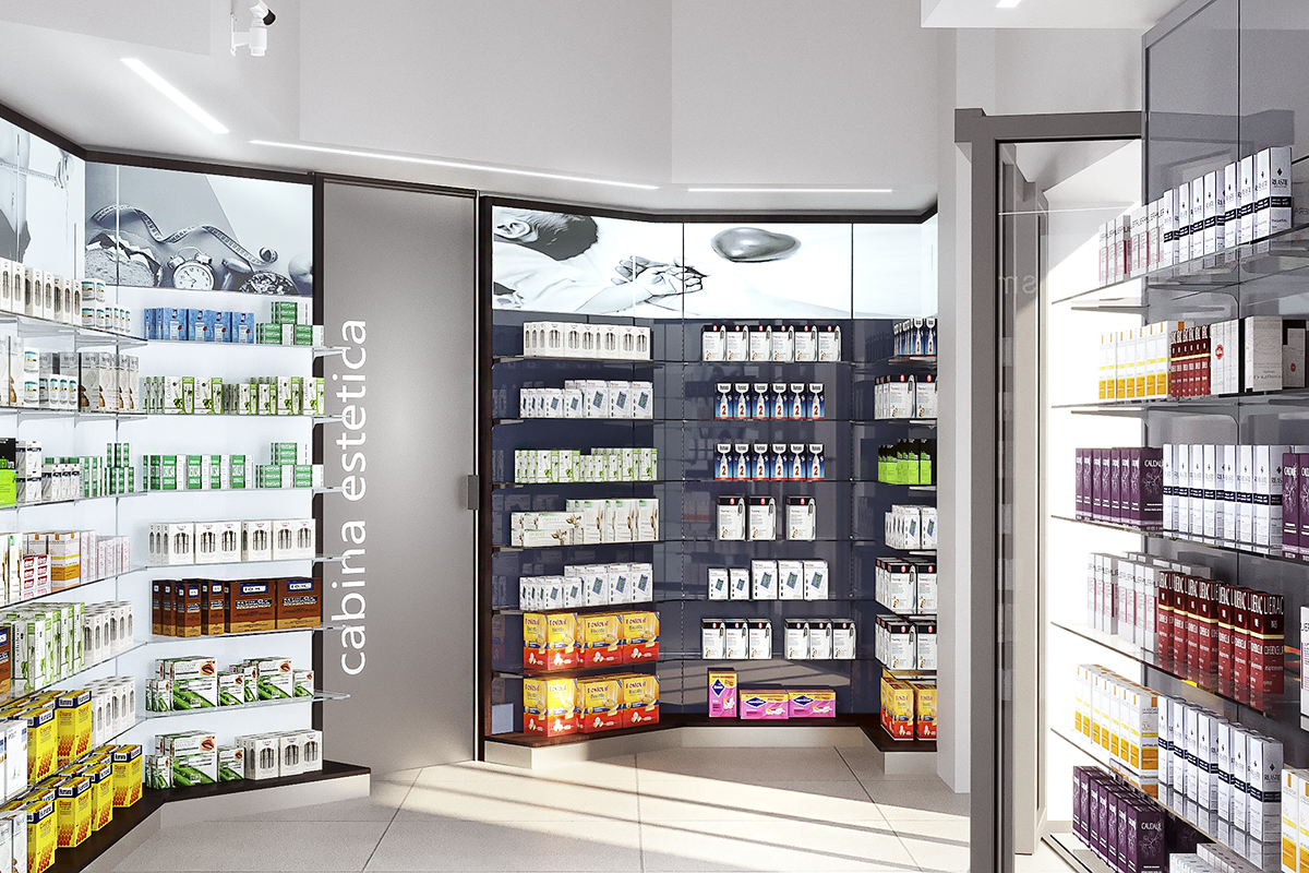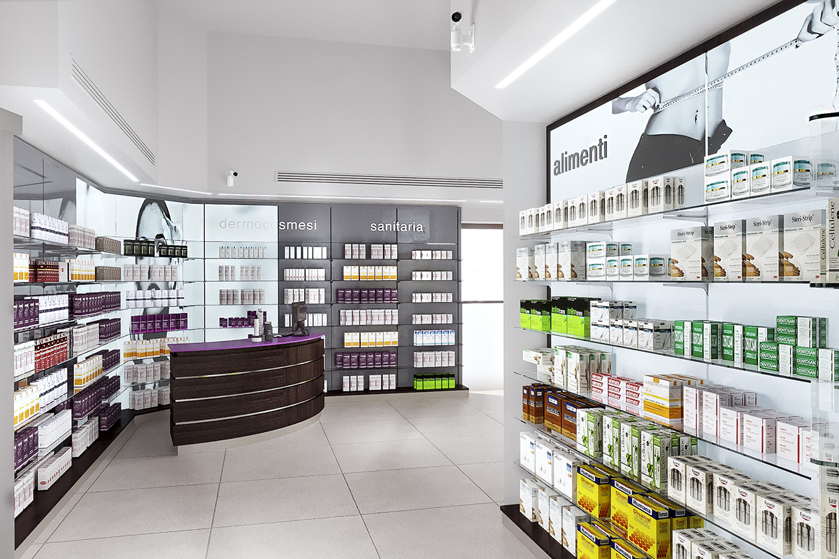 Progetto: Rinnovo Anno: 2019 Area Vendita: 150 mq Dove: Napoli (NA) Nuova Apertura Arredo Farmacia San Giorgio Capriolo Realizzazione precedente Arredo Farmacia Aramini Realizzazione Successiva