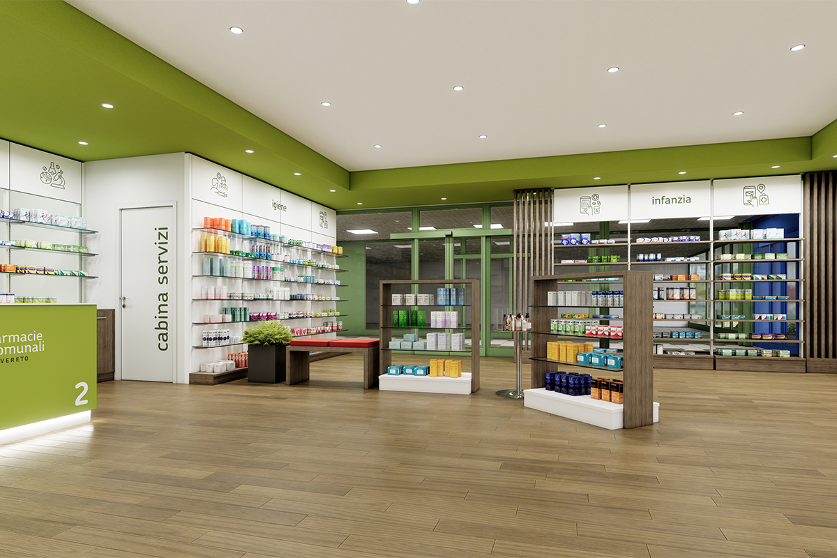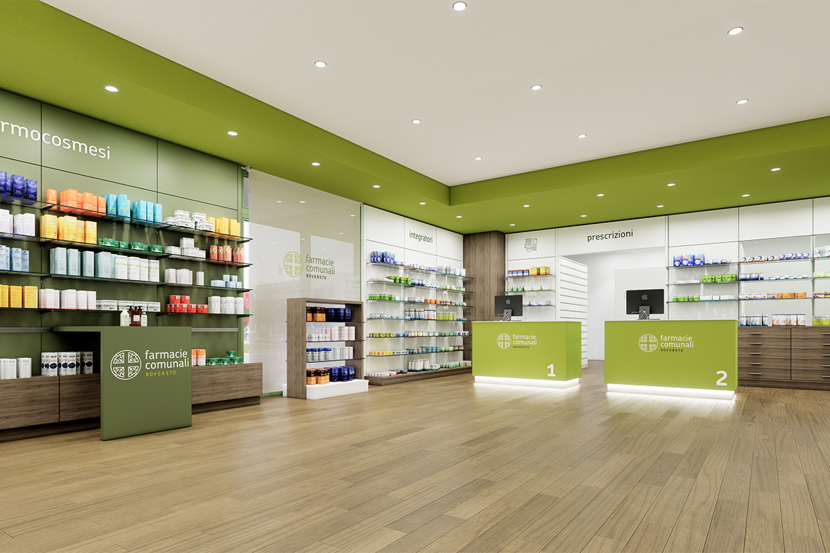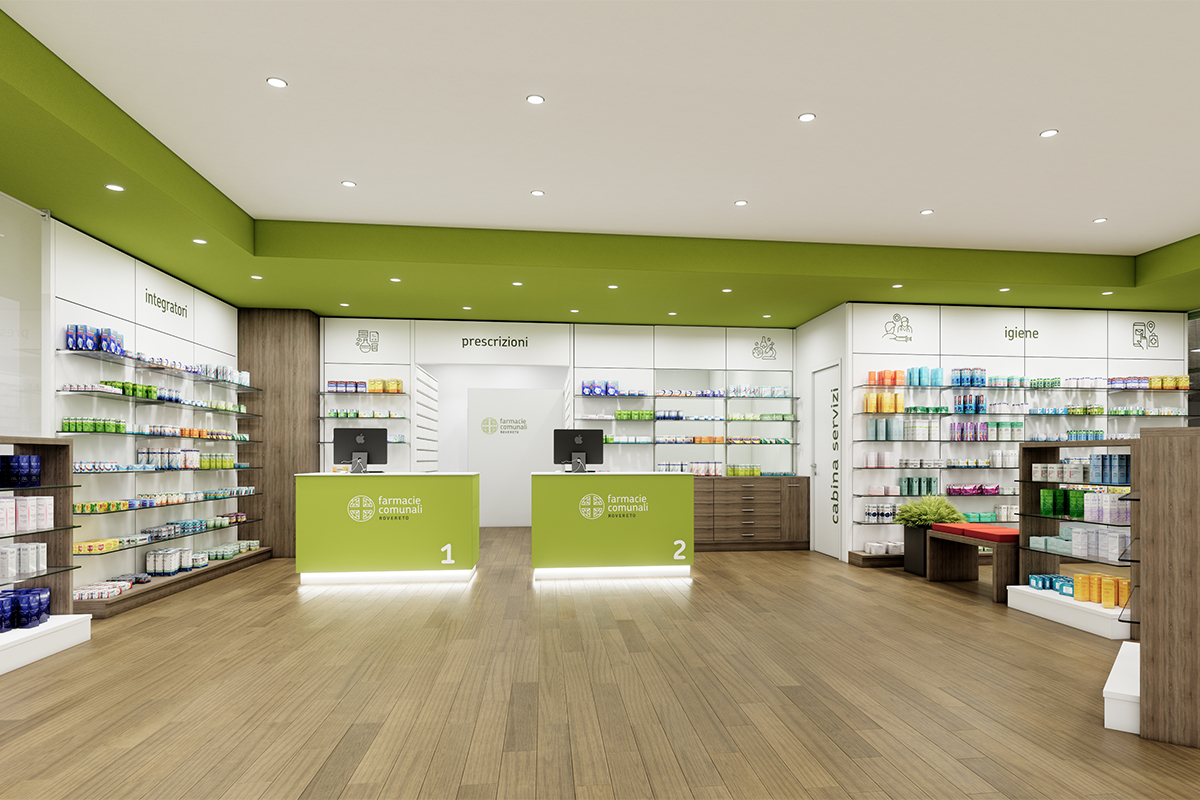 Progetto: Ristrutturazione Anno: 2025 Dove: Rovereto Trento Nuovo Arredo Farmacia Timoneri Bagheria Palermo Realizzazione precedente Nuovo Arredo Farmacia San Lazzaro Fano Realizzazione Successiva