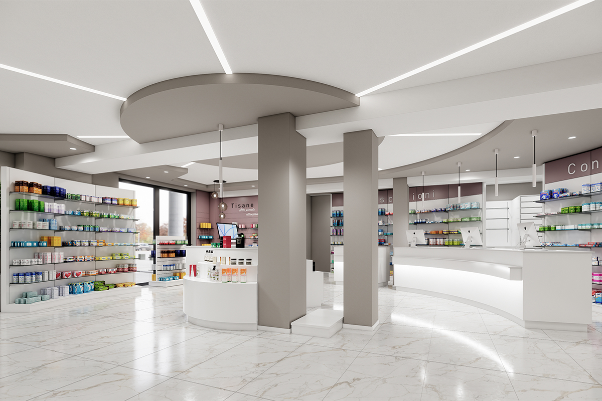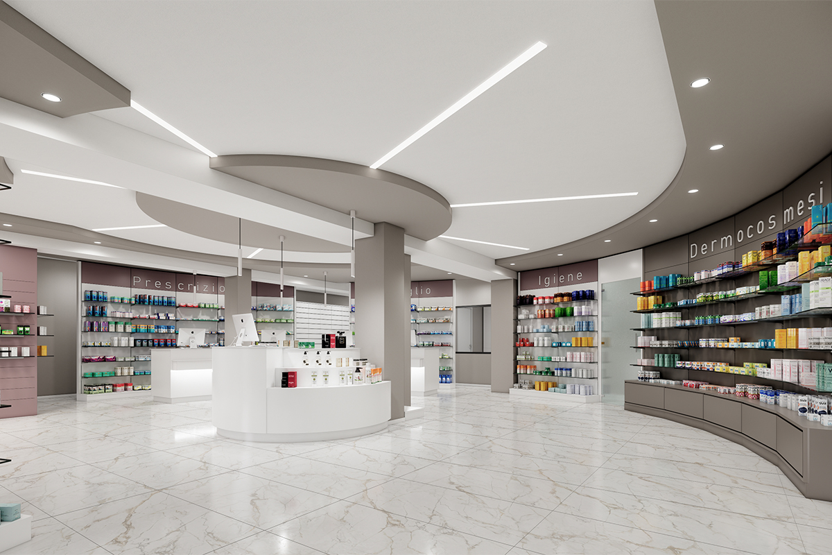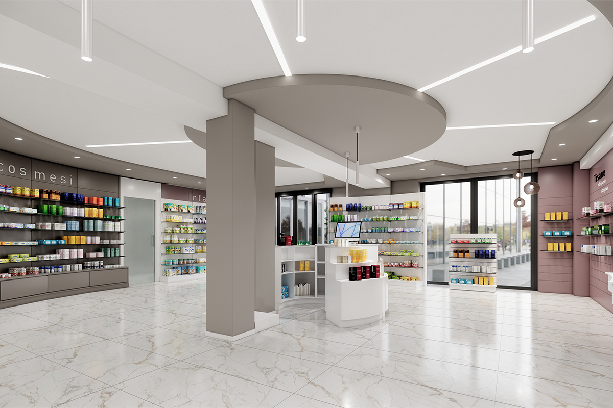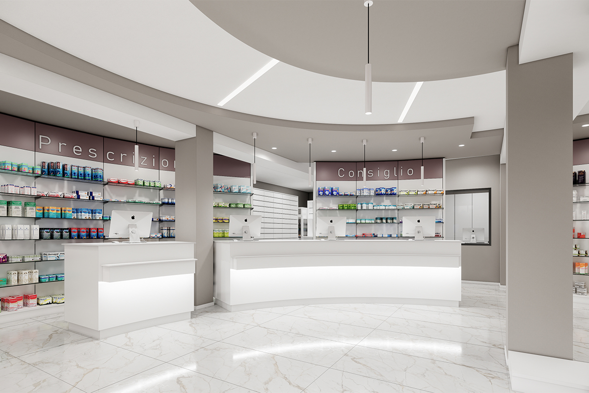 Progetto: Ristrutturazione Anno: 2024 Dove: Soliera Massa Carrara Nuovo Arredo Farmacia Carli L’Aquila Realizzazione precedente Ristrutturazione Farmacia Comunale Maranello Modena Realizzazione Successiva