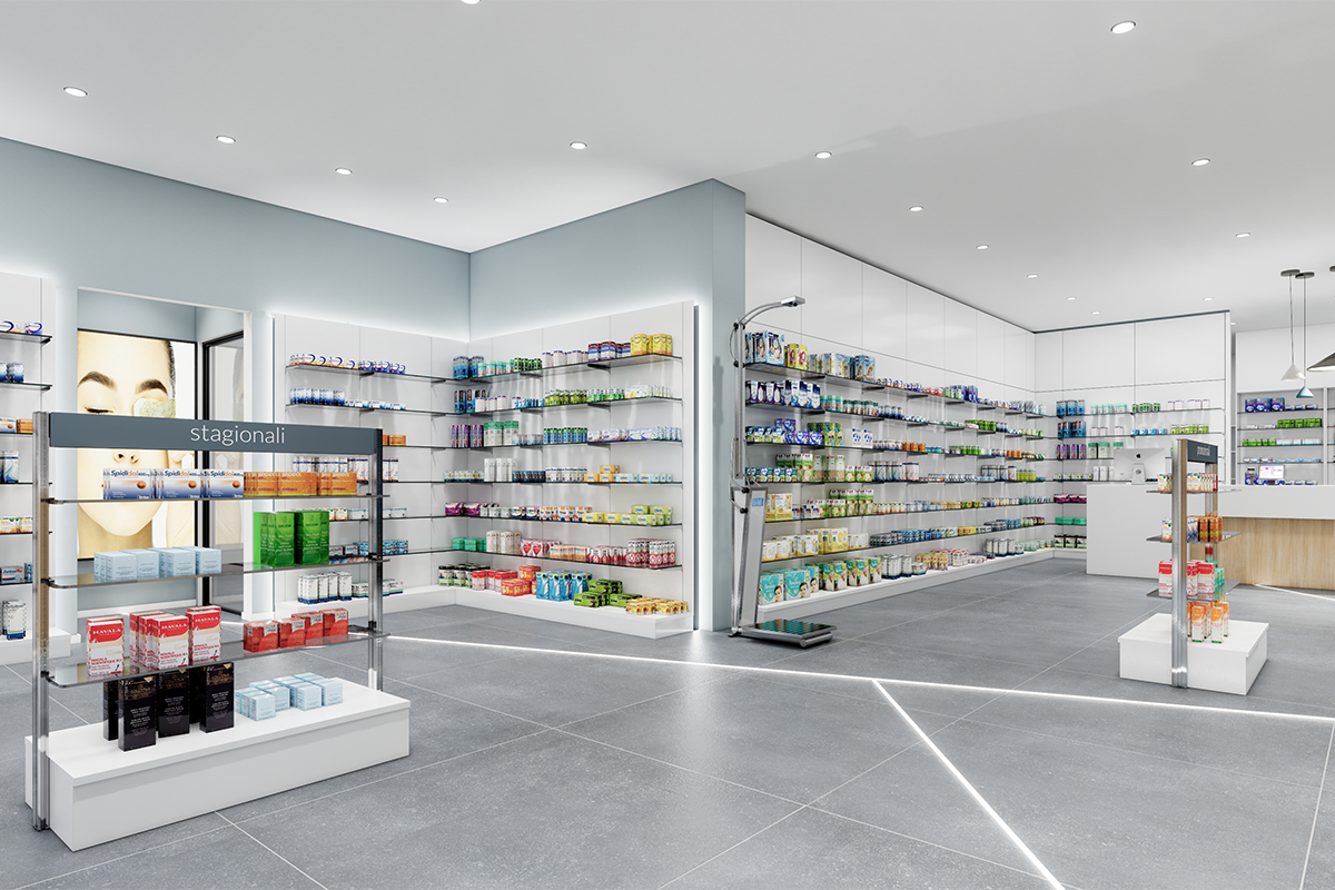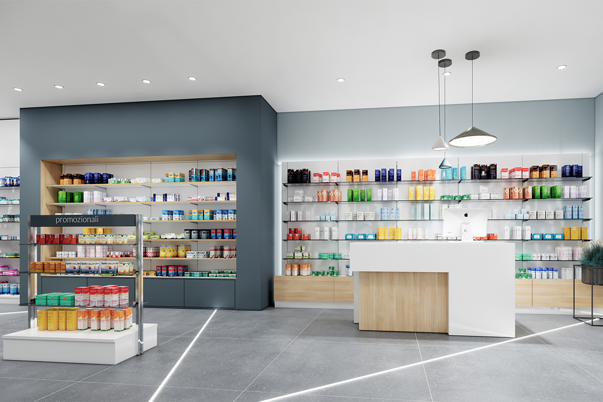Progetto: Ristrutturazione Anno: 2023 Dove: Portovenere (SP) Nuovo Arredo Farmacia Moderna Prato Realizzazione precedente Nuovo locale Farmacia Lopez NA Realizzazione Successiva